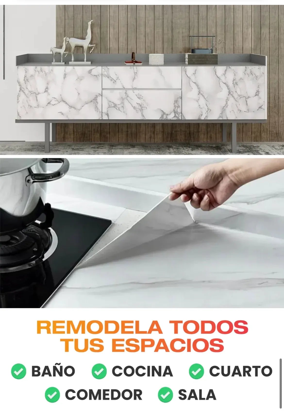 Dile adiós a las remodelaciones costosas y hola a un estilo elegante 😍. Con solo despegar y pegar, tu cocina, muebles o paredes lucirán como nuevas en cuestión de minutos 🕐✨
